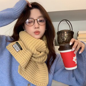 纯色简约风羊毛围巾2025秋冬季韩系氛围感超显白骑行保暖防风披肩