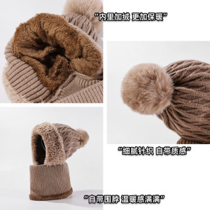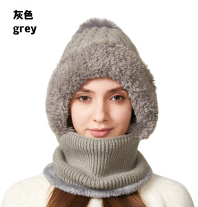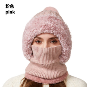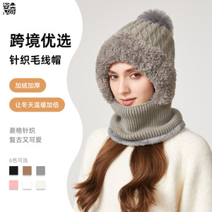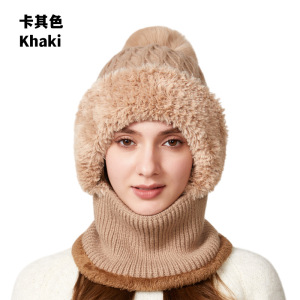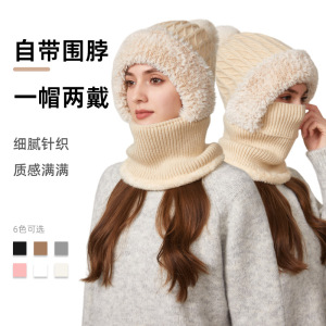 跨境新款高弹力纯色针织帽子围脖口罩连体帽女冬季骑车防风保暖帽