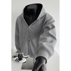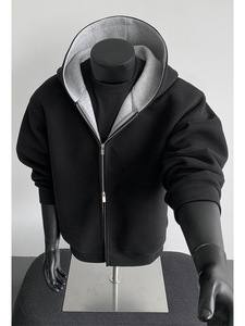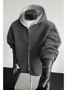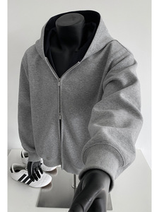 430G重磅拼接开衫连帽卫衣男款美式潮牌boxy短款廓形上衣休闲外套