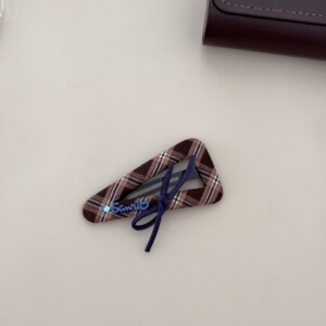 韩国美式学院风格纹蝴蝶结大三角BB发夹日常百搭侧边刘海夹发饰女