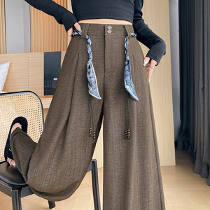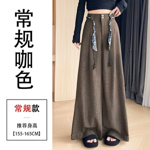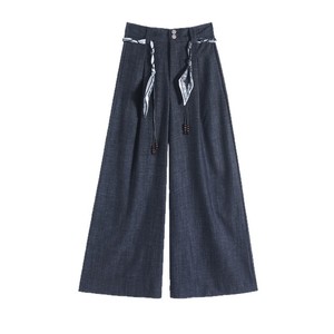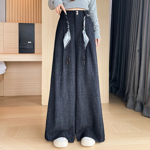 实拍秋季新款西装裤 仿牛仔时尚双排扣显瘦直筒阔腿裤休闲拖地裤