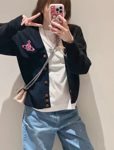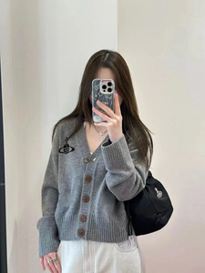 25SS薇薇春季新款土星刺绣毛衣荷叶领韩版修身显瘦针织衫集结地