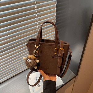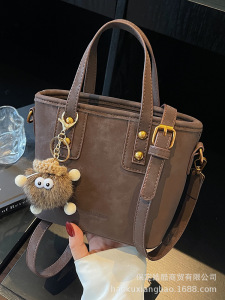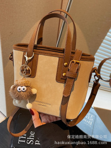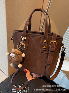 麂皮绒包包女秋冬百搭2025新款磨砂复古单肩斜挎包爆款手提水桶包