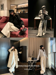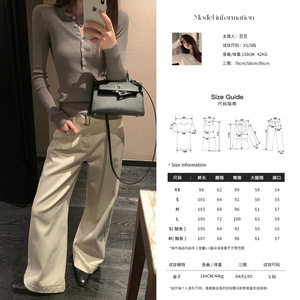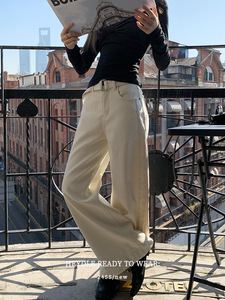黑豆哼哼 时装报刊*白杏色牛仔裤女春秋季窄版直筒裤腰带阔腿裤