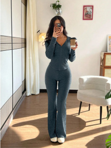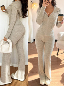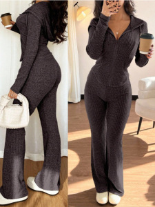 2025欧美跨境亚马逊秋冬修身套装休闲拉链束腰上衣提臀长裤套装女