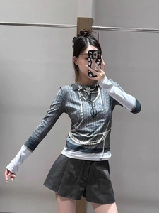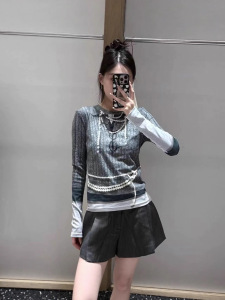 南油品质2025早秋新款3D打印趣味图案印花打底衫长袖上衣女
