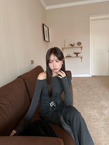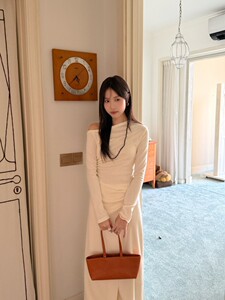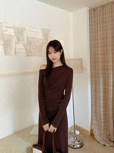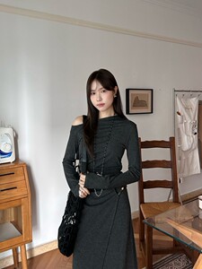 DIGM | 2025秋冬极简慵懒纯欲露肩褶皱收腰针织衫长袖T恤女A19585