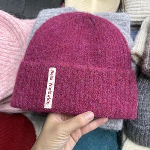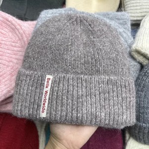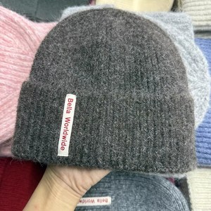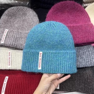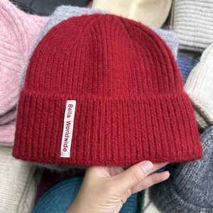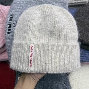 个性撞色布标显瘦毛线帽子女秋冬保暖毛绒百搭针织帽减龄冷帽潮帽