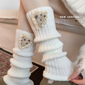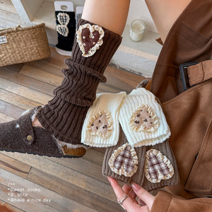 靴尚棉袜套女美拉德爱心堆堆袜爱心秋冬毛线针织保暖miu系中筒袜