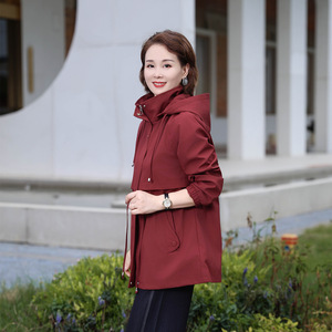 女士春秋装风衣外套中长款2025新款妈妈风衣女秋季大码连帽上衣