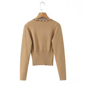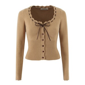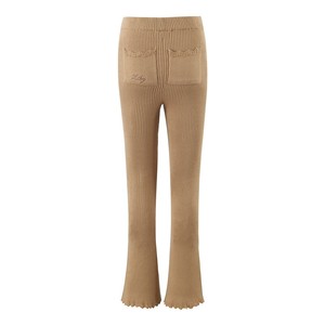 亚马逊热卖时尚休闲卡其木耳边系带针织衫高弹微喇叭针织长裤套装