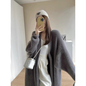 水貂绒长款毛衣开衫女秋冬慵懒风宽松高级感春秋中长款温柔外套厚