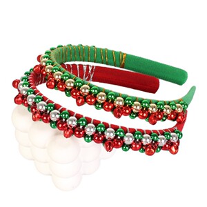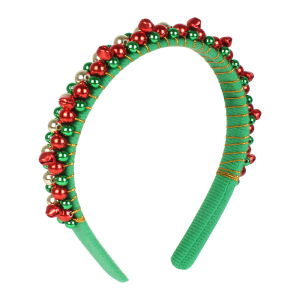 2025新款红绿圣诞节发箍女简约铃铛串珠节日发饰网红派对头饰批发