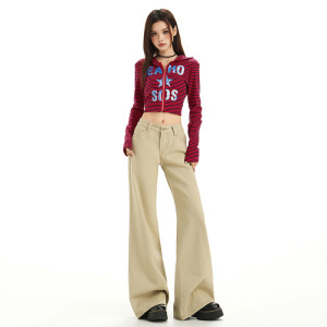 卡其色不贴腿微喇牛仔裤女秋季新款高街宽松显瘦直筒阔腿马蹄裤子