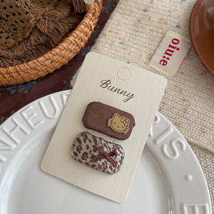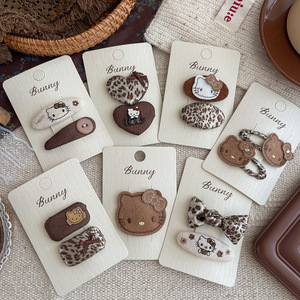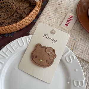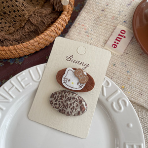 韩系新款豹纹丝绒kt猫儿童发夹甜酷布艺刺绣包夹侧边碎发夹发饰女