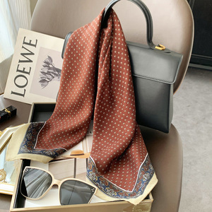 复古咖色小方巾女百搭装饰丝巾腰带腰间配饰搭配衬衫领巾颈饰批发