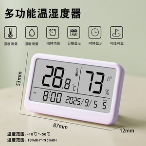 高精度电子温湿度计婴儿房车载迷你温度计磁吸闹钟数显超薄温度仪
