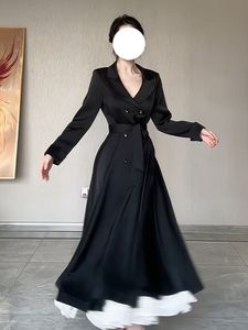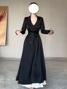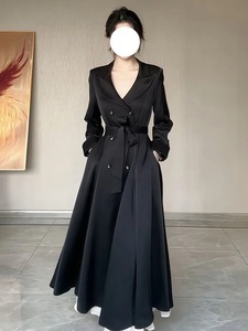 【复古宇宙】秋季新款法式气质高级感半开领中长款黑色风衣外套女