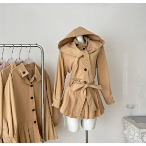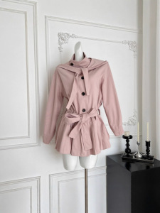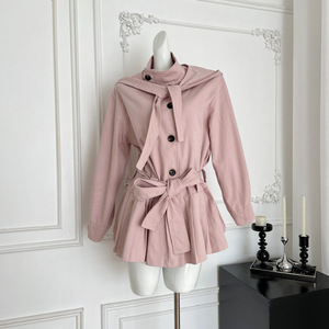 百褶风衣裙法式气质立领高级感长袖连衣裙女早秋