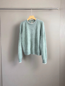南油篙品2025秋冬新款BC链条拼接撞色拉绒羊绒针织衫时尚百搭毛衣