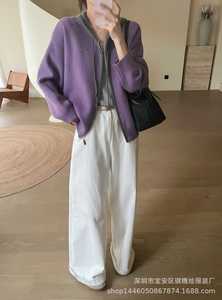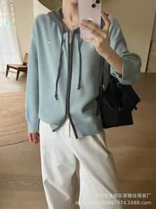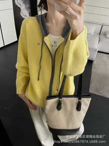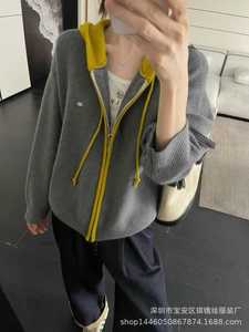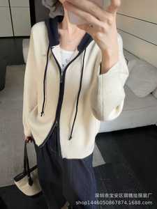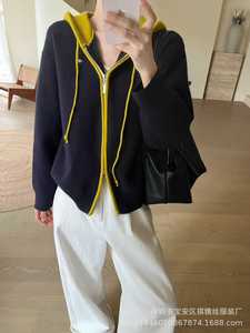 琪镌绘制针织衫开衫女装秋冬新款时尚拼色拉链连帽毛衣外套882515