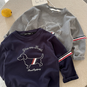 儿童德绒打底衫韩版男童套头衫卡通小狗1-6岁宝宝秋冬长袖T恤保暖