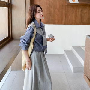 气质休闲半身裙两件套女2025年秋季新款宽松显瘦条纹衬衫上衣减龄