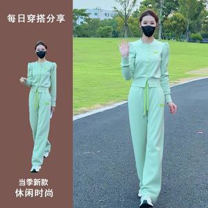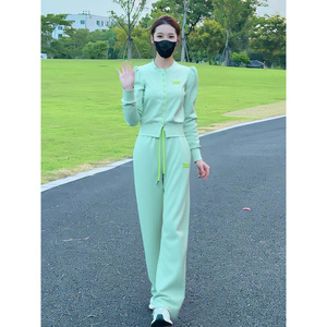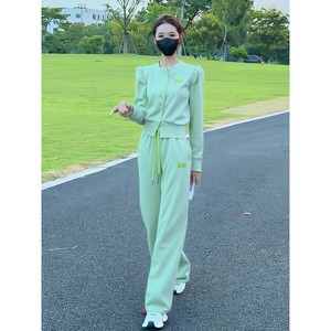 2025新款微胖大码休闲运动套装薄荷绿显瘦宽松开衫卫衣两件套女装