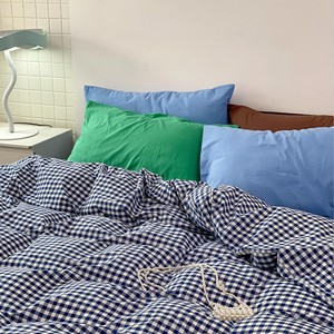 ins博主风全棉四件套复古格子纯棉水洗棉床单被套简约宿舍三件套4