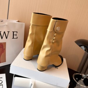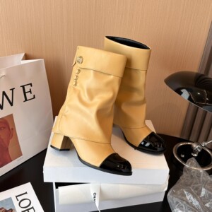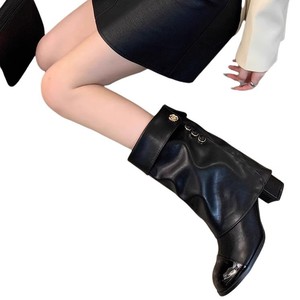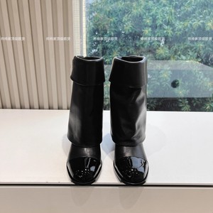 高版2025小香新款纽扣双C翻口短靴圆头粗跟裤管靴时装靴直筒靴