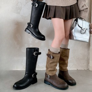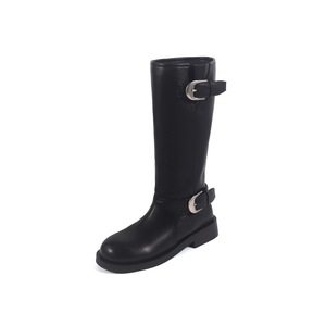 2025秋季新款粗跟圆头拼接西部靴褶皱堆堆靴骑士靴复古长筒靴女