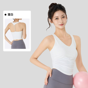 瑜伽服背心上衣女带胸垫免穿内衣腰部抽褶紧身显瘦普拉提运动背心
