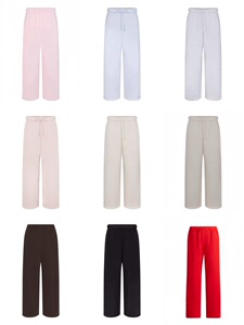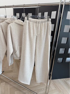 高品质对版skims卡戴珊25秋冬新款浅粉色加绒抽绳系带直筒卫裤