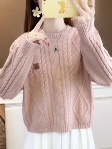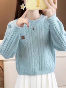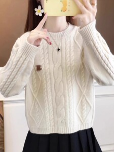 麻花毛衣女士2025年秋冬季新款宽松小个子保暖百搭上衣打底针织衫