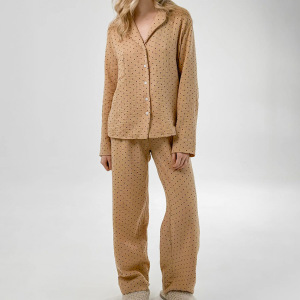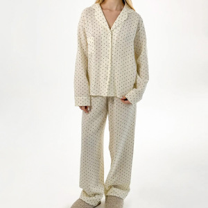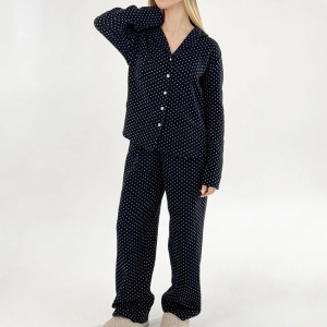 欧美纯棉女士睡衣秋冬新款波点双层纱布印花家居服套装2025年跨境