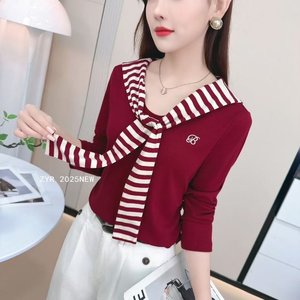 一件代发直播爆款2025秋季新款时尚假两件洋气减龄打底衫上衣女