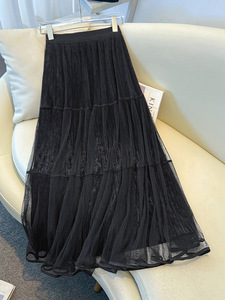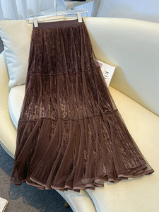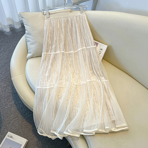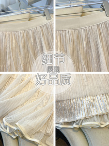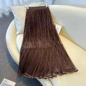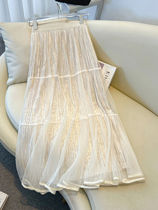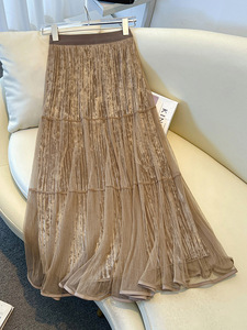 2025新款丝绒百褶半身裙女秋季显瘦甜美设计感网纱中长款a字裙