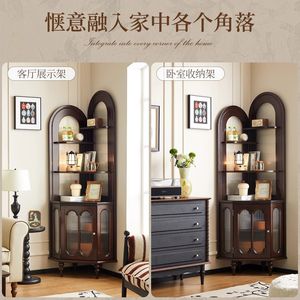 法式墙角柜置物架靠墙一体美式复古实木中古风客厅转角柜三角柜