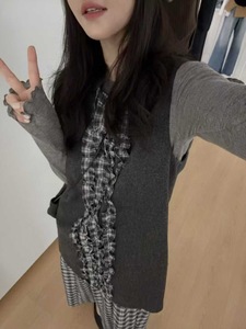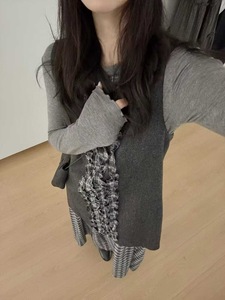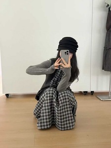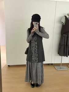 【WOW】韩系小众设计感格纹花瓣拼接背心连衣裙(配包包 不含内搭)