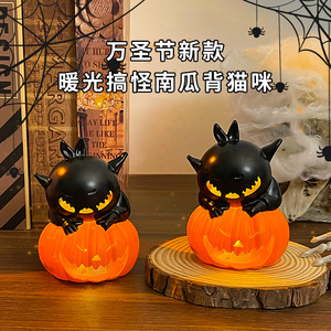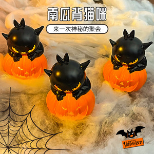 万圣节南瓜灯气氛布置装饰道具LED电子蜡烛灯发光南瓜小夜灯摆件