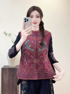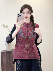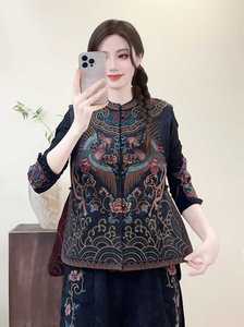 2025秋重工刺绣国风宽松女缎面马甲秋季立领盘扣民族风女式坎肩