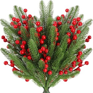 仿真绿植松针松柏叶 浆果 圣诞节家居装饰 花环圣诞树摆件礼物DIY
