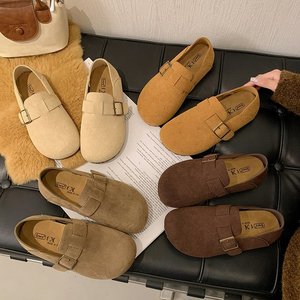 现货磨砂皮软底两穿勃肯单鞋2025新款秋季懒人一脚蹬豆豆鞋单鞋女
