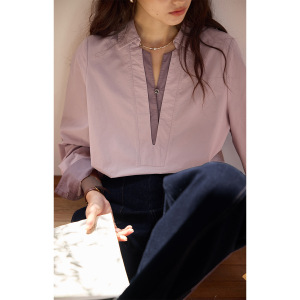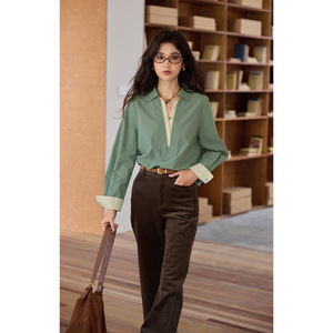 solighter 法式复古假两件衬衫女秋季长袖上衣