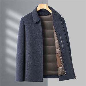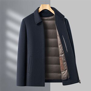 【可拆卸羽绒内胆】新款翻领羊毛夹克秋冬季加绒加厚保暖双面呢外
