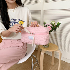 2631 日系清新撞色花朵手提化妆包大容量便携手拎收纳包学生笔袋