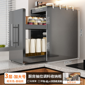 【枪灰色 碳钢款】三层【加大22cm】台面抽拉式置物架