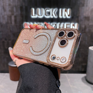 镶钻闪粉适用苹果17promax手机壳奢华镶钻磁吸苹果17pro/17保护套