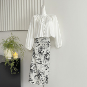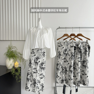 国风新中式水墨印花半身长裙小众设计直筒半身裙