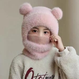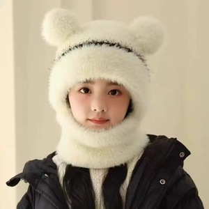 儿童毛线针织帽男女儿童冬季围脖一体连帽宝宝防风护耳保暖套头帽